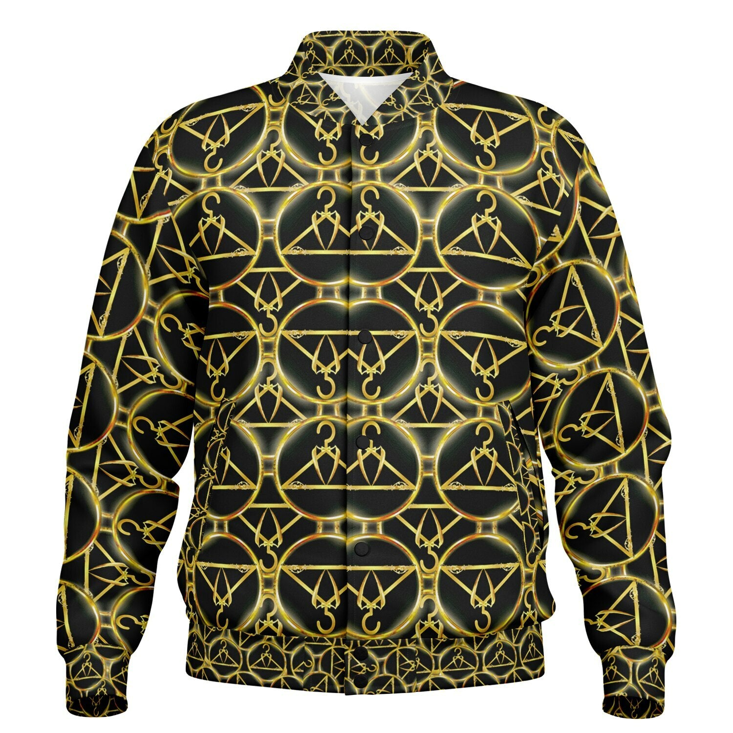 This premium heavyweight baseball jacket is designed with an outer layer crafted from a resilient polyester and spandex blend, ensuring both comfort and durability. Each jacket is made with a 93% polyester and 7% spandex fabric composition, weighing in at 12.09 oz/yd² (410 g/m²) for a robust feel that´s ideal for colder temperatures. The jacket features snap button closures, available in either white or black, to complement various design preferences. Every jacket is individually printed, cut, and sewn to maintain flawless graphic alignment with all-over print capability, making it perfect for customized branding or team apparel.