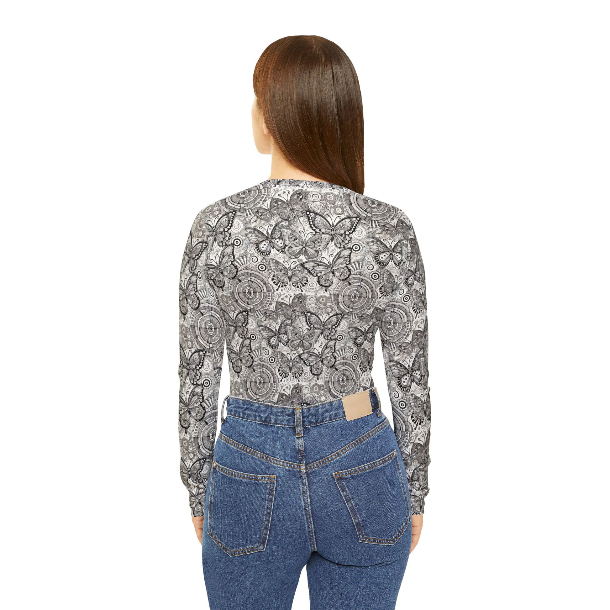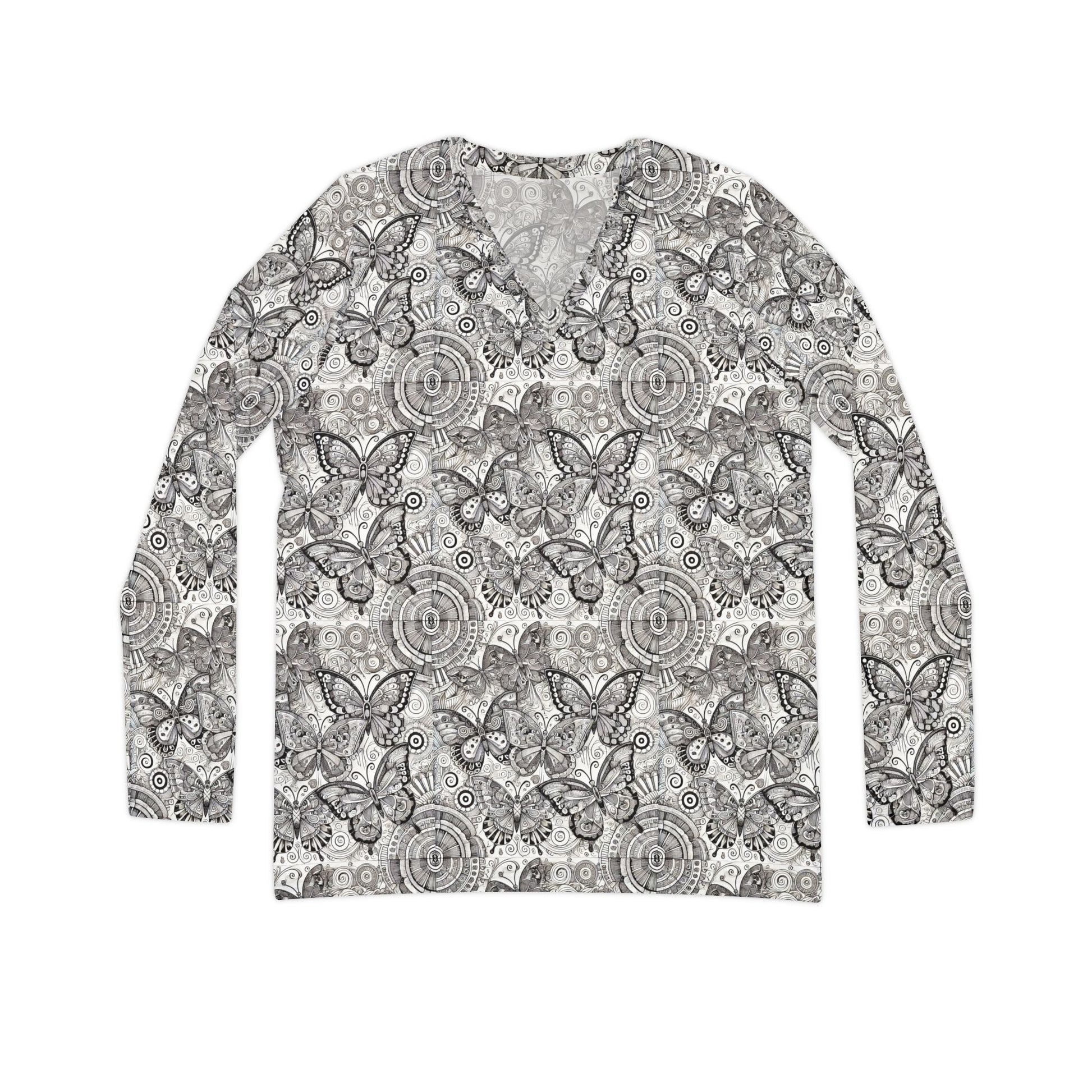 Butterfly Print Women's Long Sleeve V-Neck Shirt - Stylish & Comfortable
