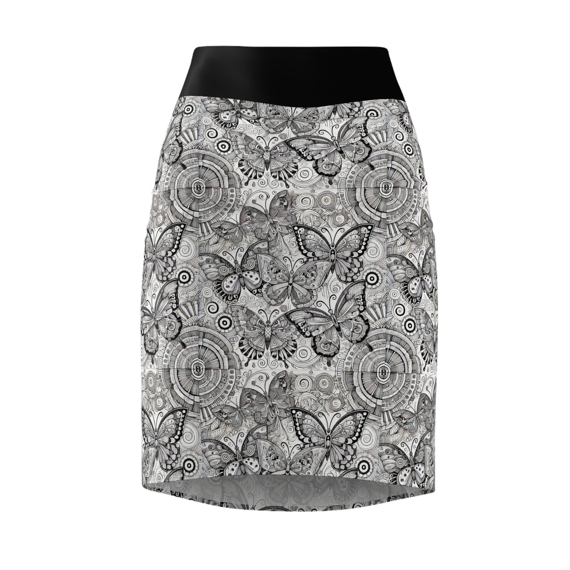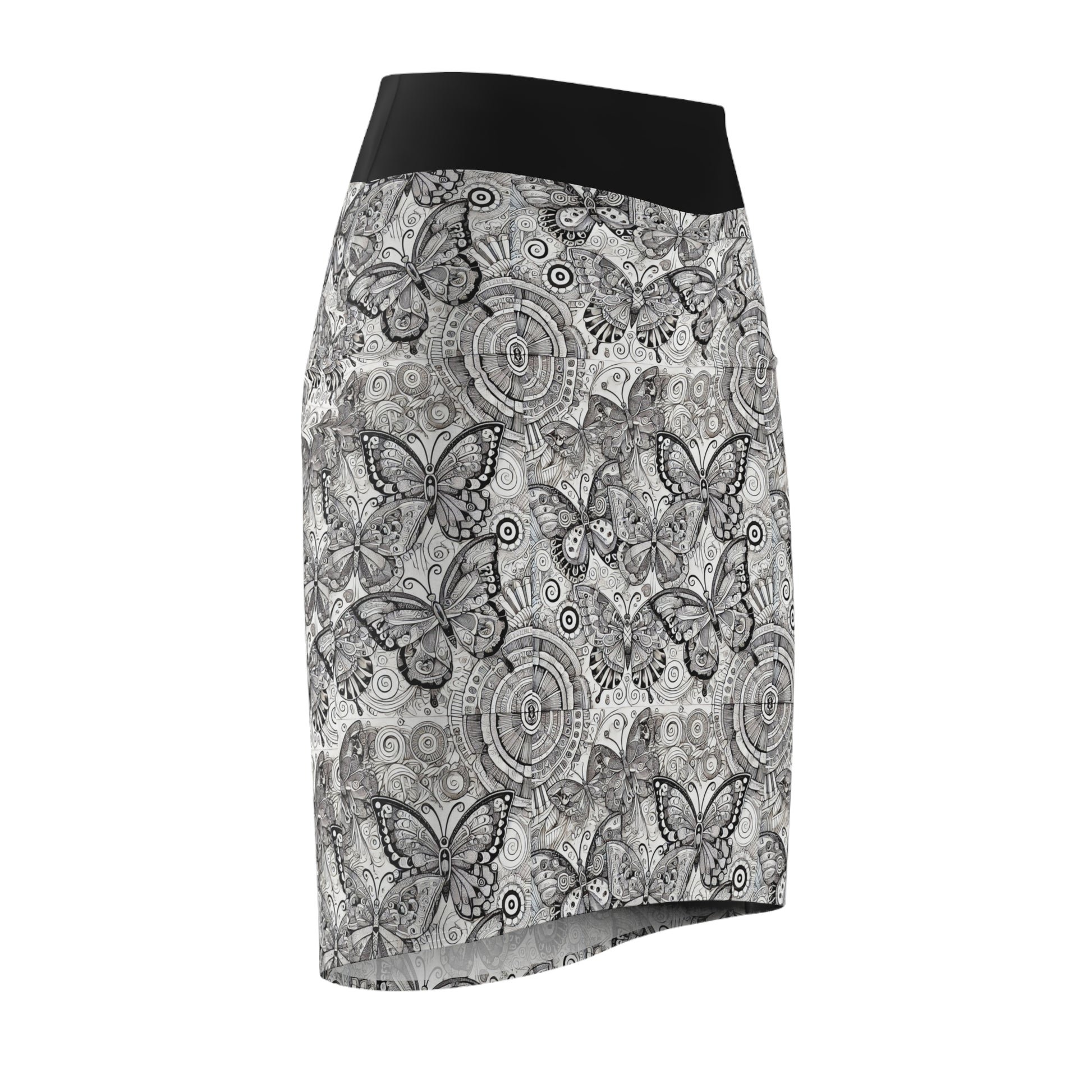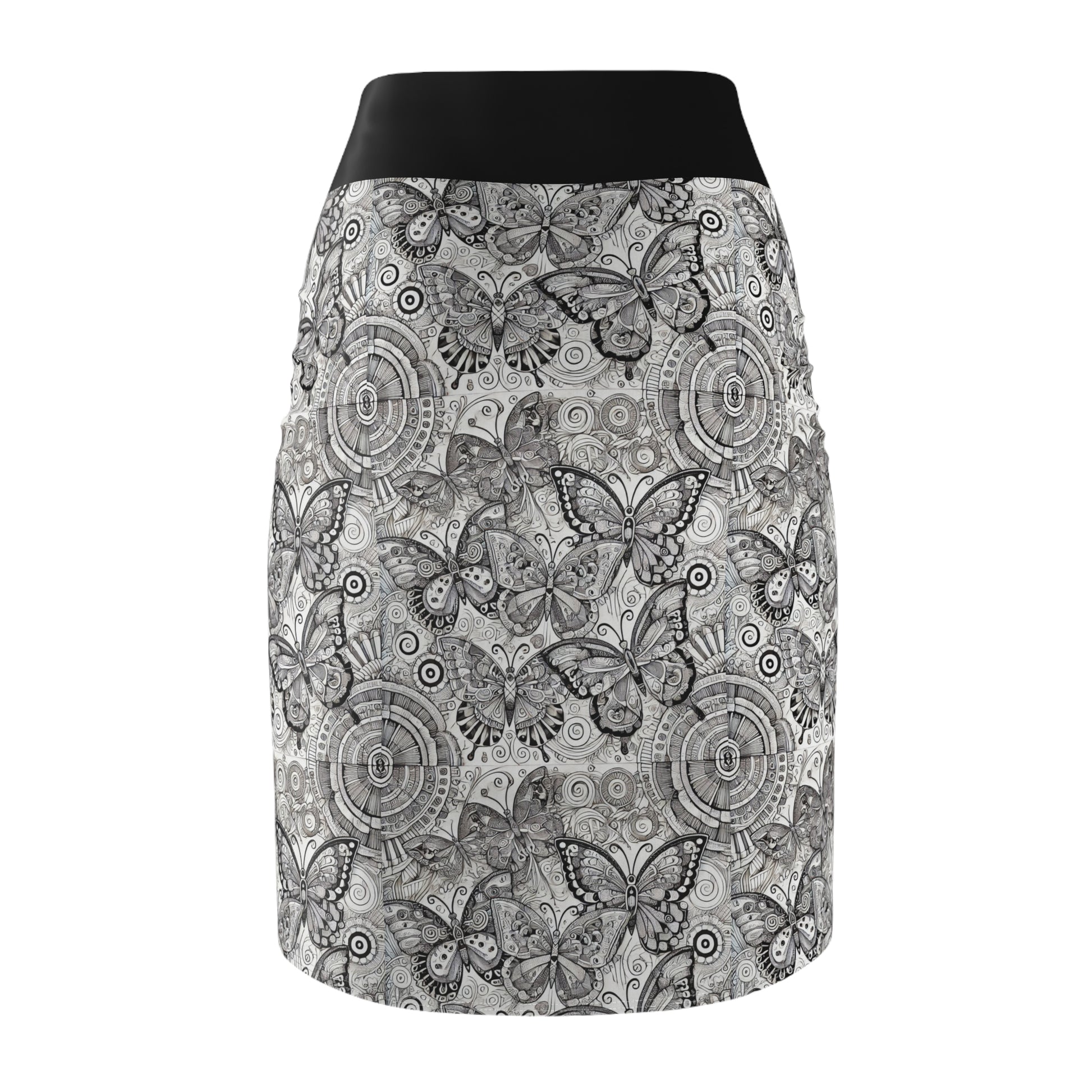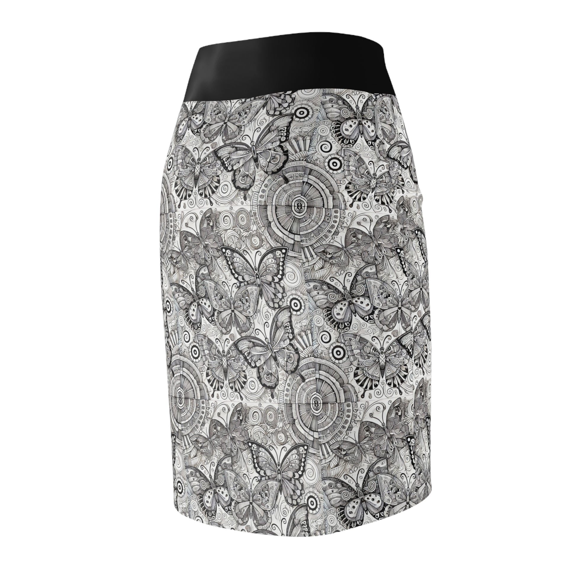 Butterfly Print Women's Pencil Skirt - Elegant & Chic