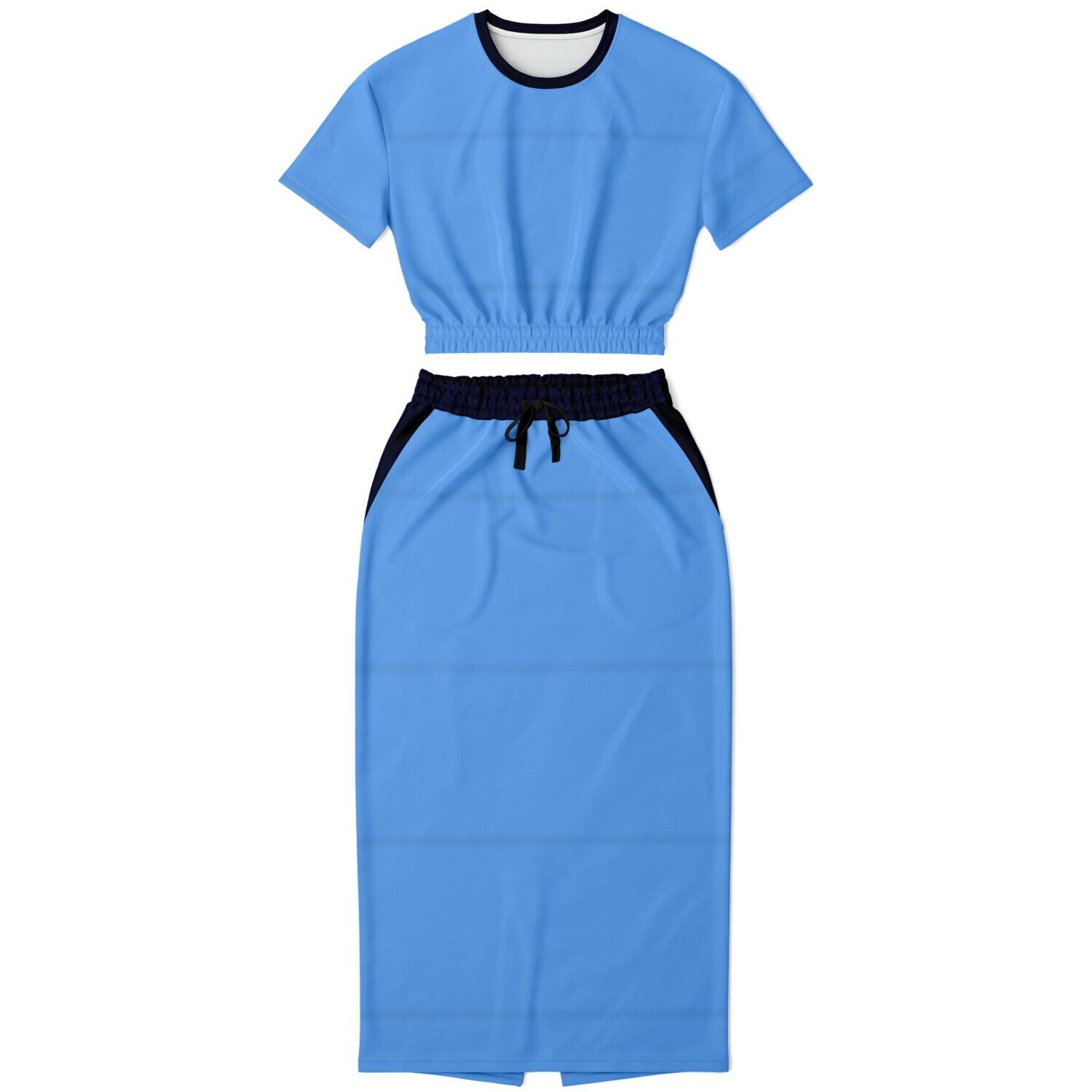 This two-piece set is made with a premium fabric blend that will make you look and feel great. The cropped short sleeve top features an elastic waistband so it’s comfortable to wear without any worries. The matching skirt has a drawstring closure and two side pockets making it ideal if you’re looking for added practicality.
