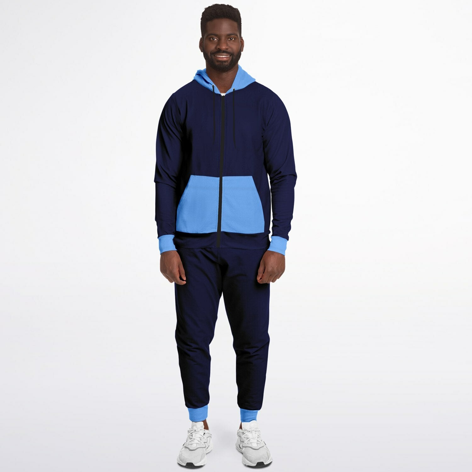 Your stylish designs will definitely be on-point with this fashion ziphoodie and jogger set. The ziphoodie comes with a double layer hood and a kangaroo pocket, while the jogger comes with two side pockets.